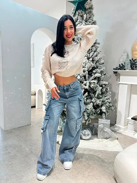 Suéter acanalado de cierres talla única